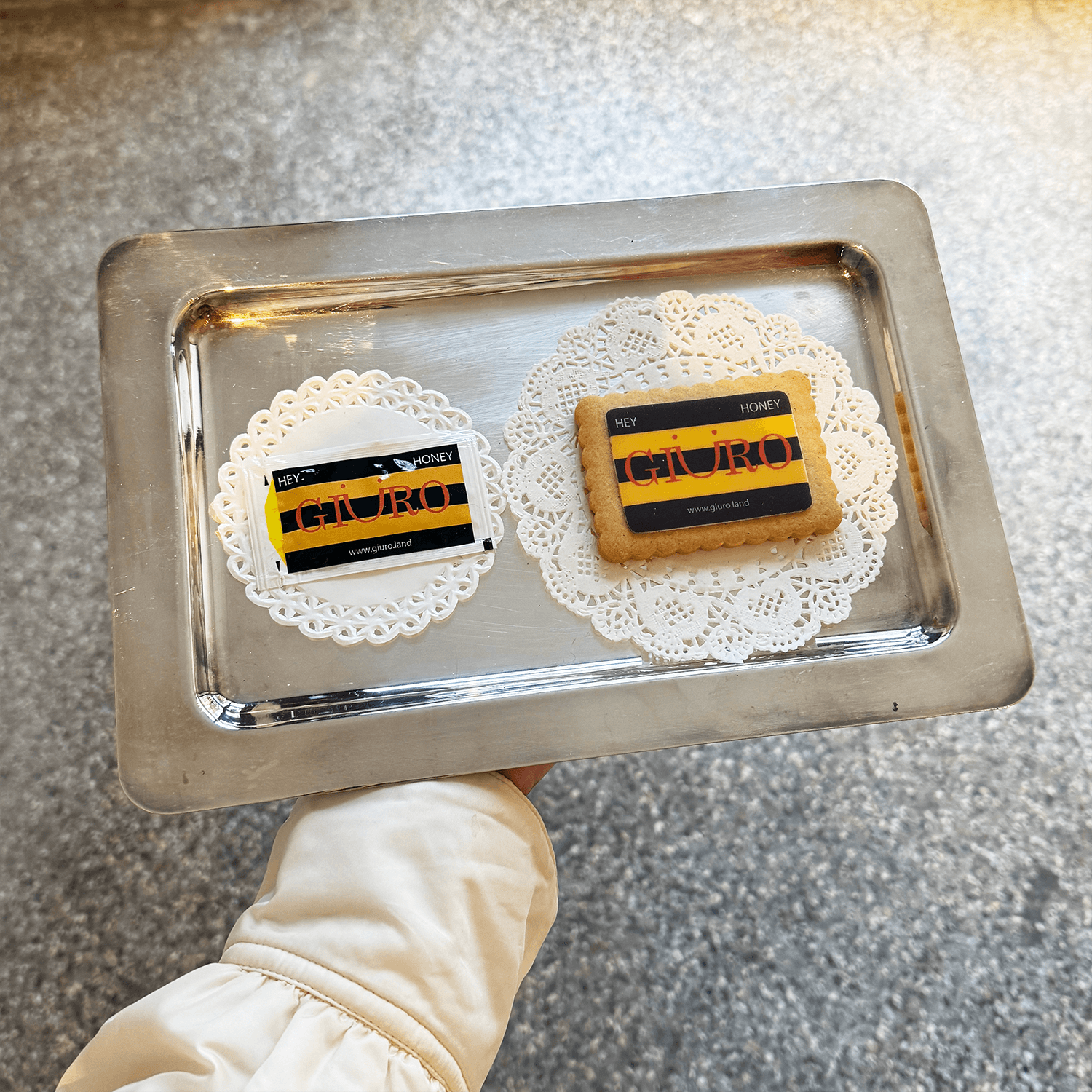 Ad accogliere gli ospiti, tè caldo con miele e biscotti firmati GIÜRO, un piccolo rituale che trasforma il pop-up in un’esperienza tutta da gustare.