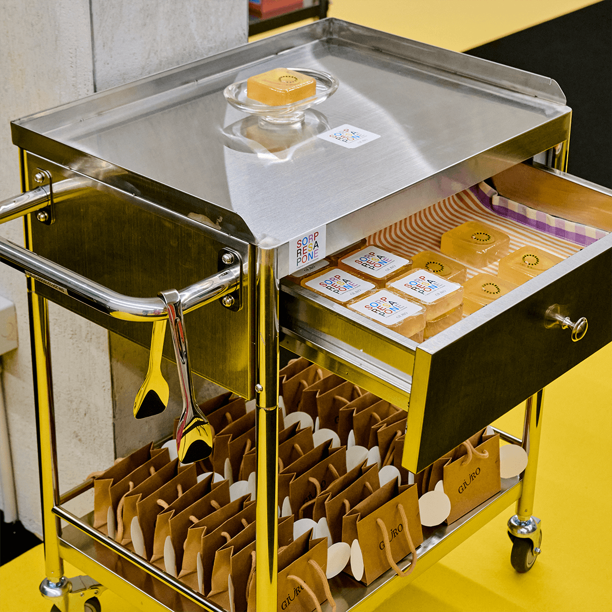 Il gift di questo pop-up era il Sorpresapone: un sapone al miele che nascondeva un anellino al suo interno.