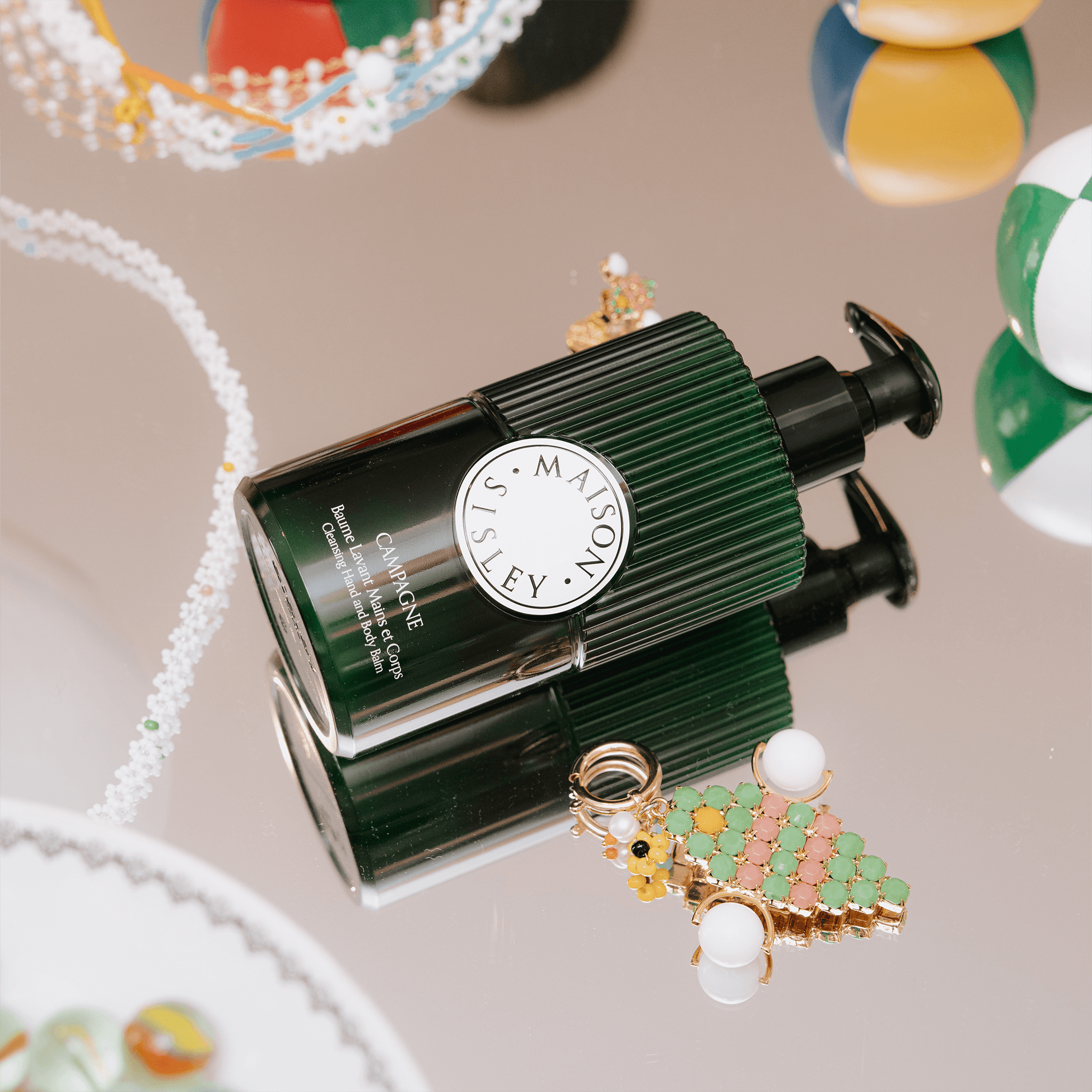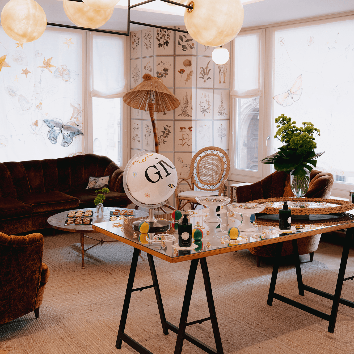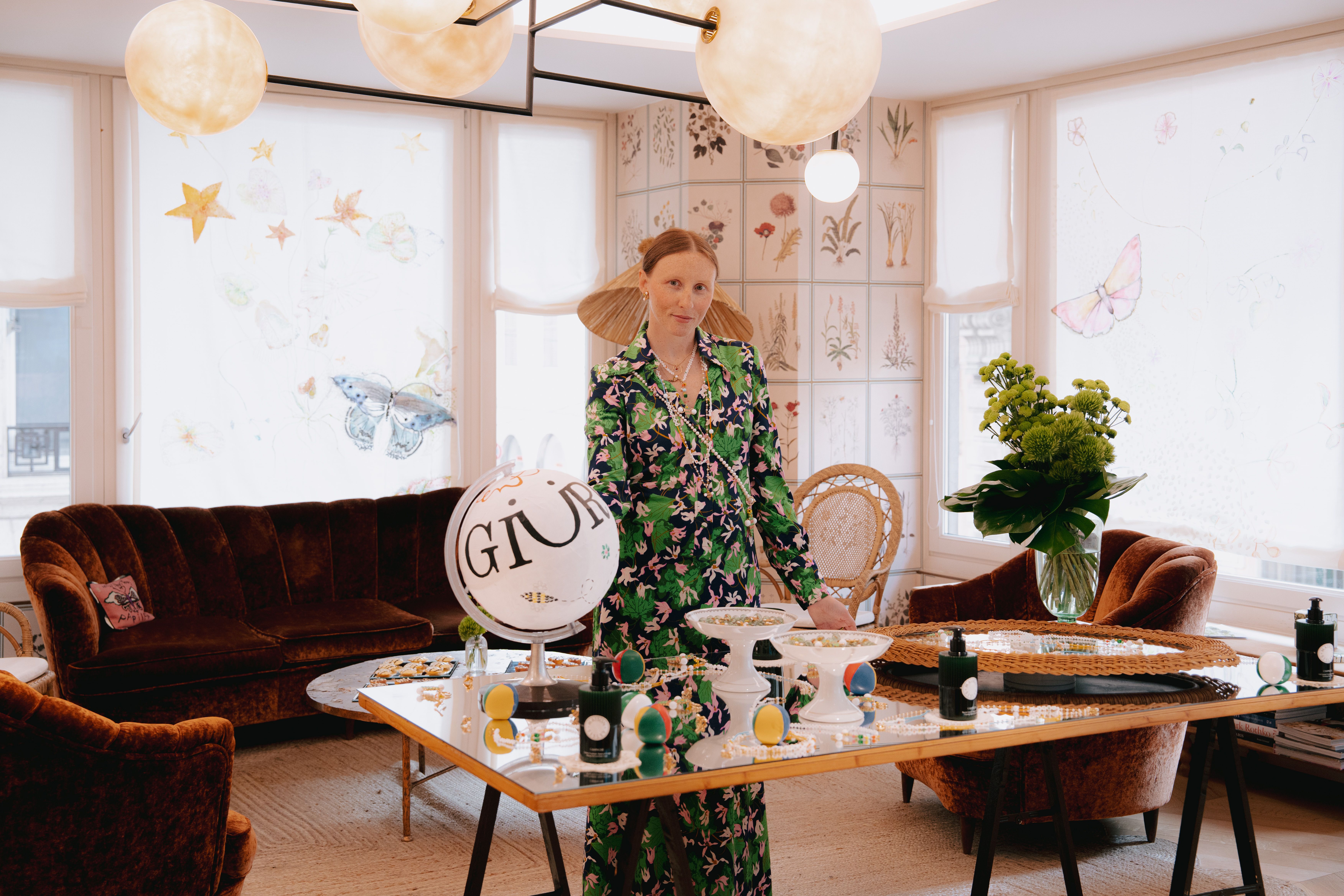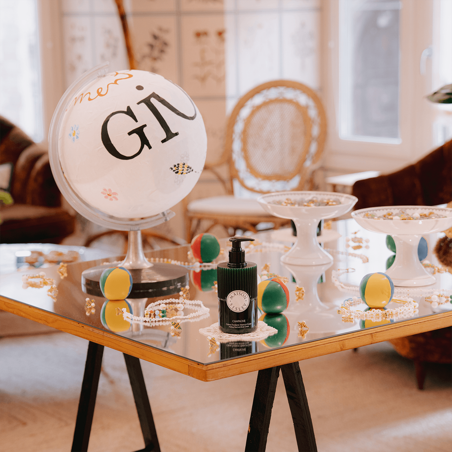 L'heritage francese di Maison Sisley si è unito all'universo GIÜRO in ogni singolo dettaglio: dalle palline da giocoliere bianche a verdi alle madeleine a forma di ape.