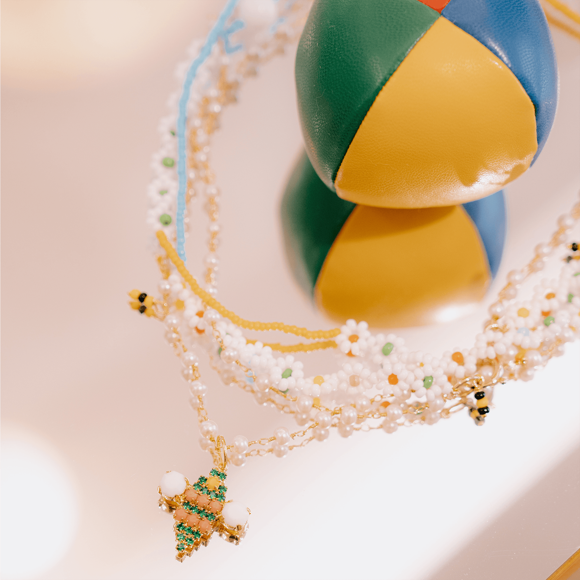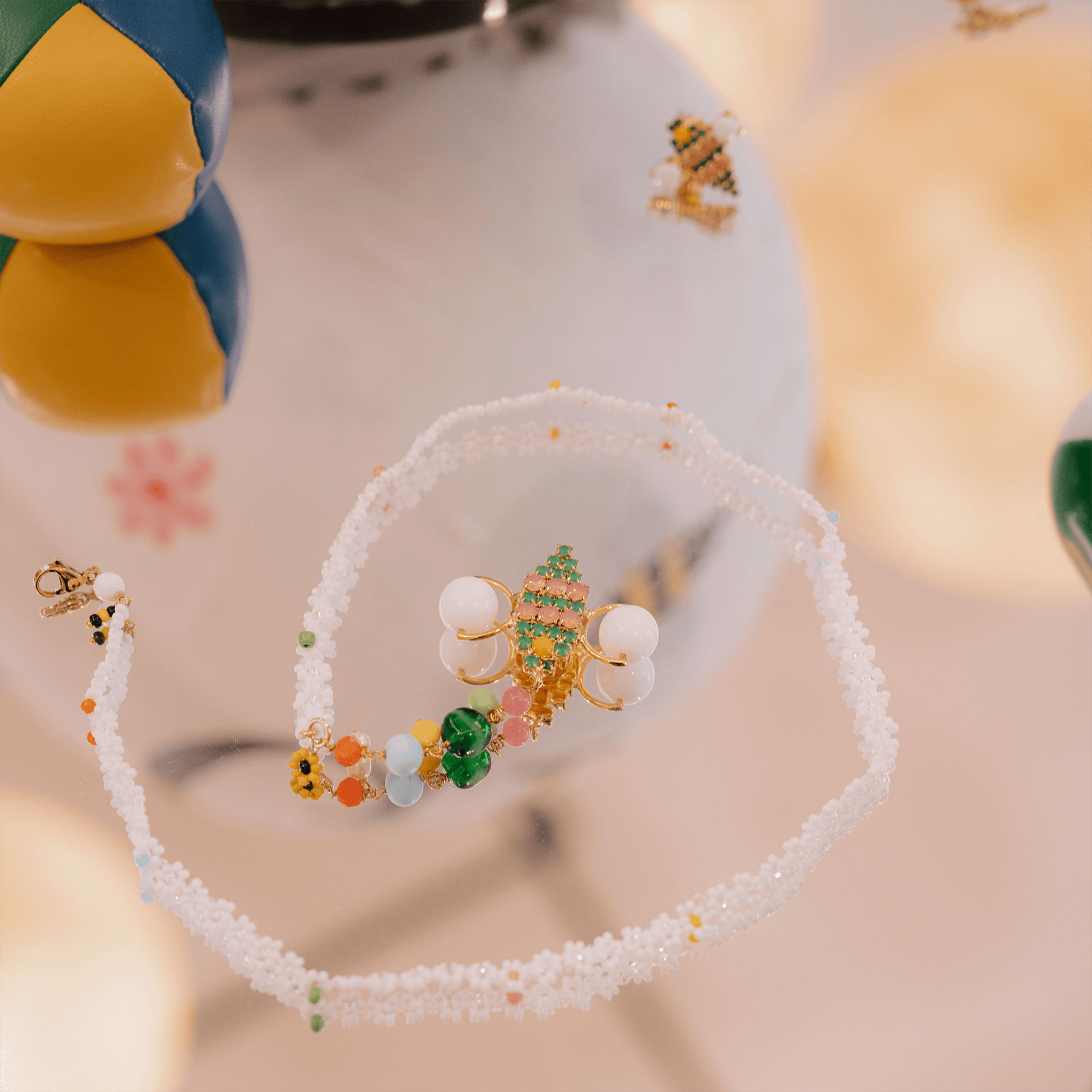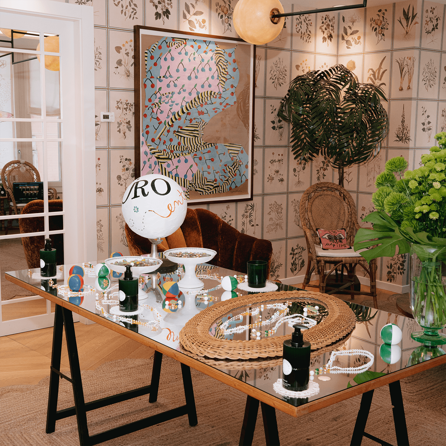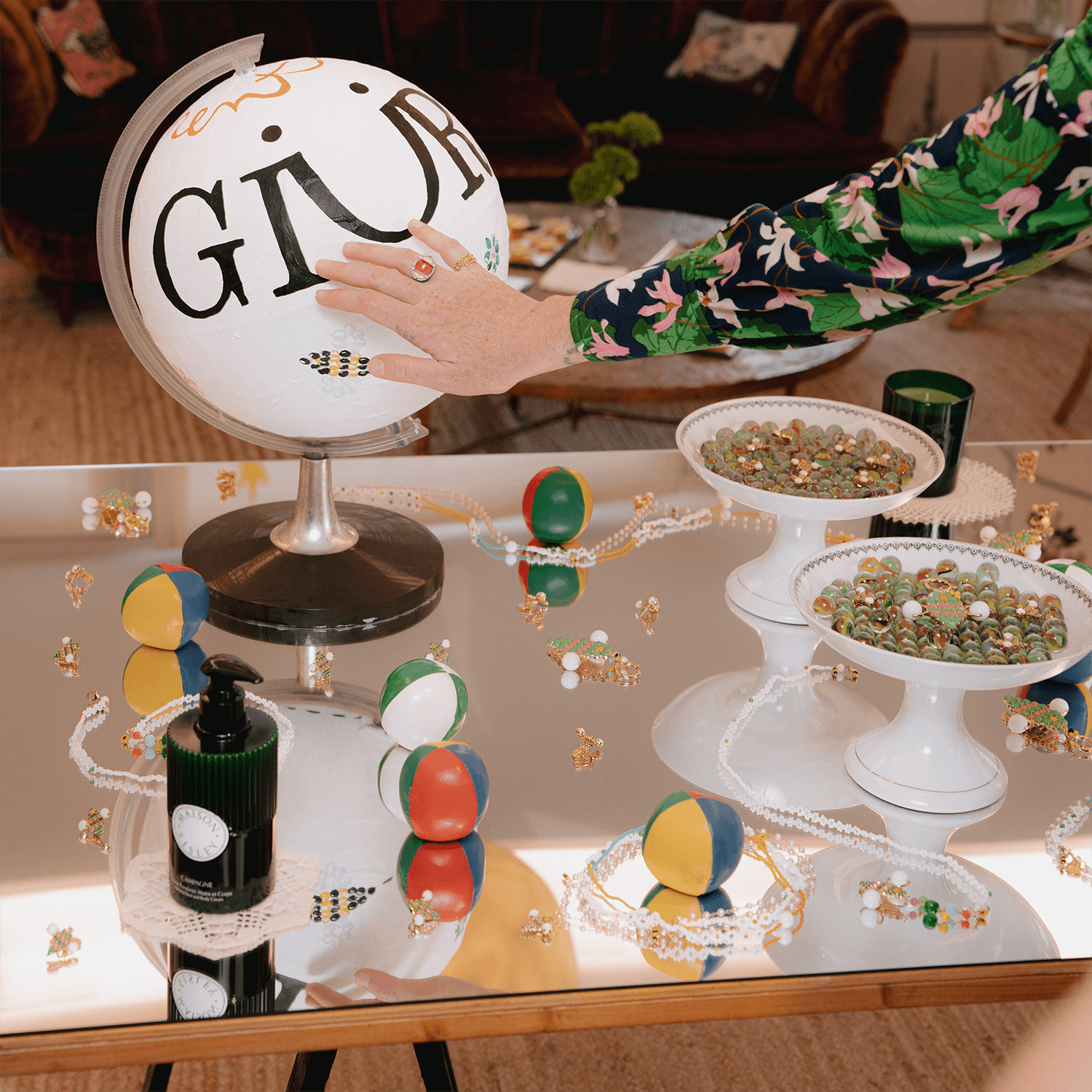 L'heritage francese di Maison Sisley si è unito all'universo GIÜRO in ogni singolo dettaglio: dalle palline da giocoliere bianche a verdi alle madeleine a forma di ape.